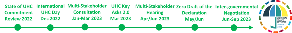 - Nous attendons avec intérêt la contribution des dirigeants à un processus inclusif exaltant pour la réunion de haut niveau sur la CSU, qui veille à ce que soit entendue la voix de toutes les parties prenantes, en particulier la société civile, les communautés, les autorités locales et régionales ainsi que les représentants des populations et groupes sous-desservis, spécialement les femmes et les filles, et nous espérons que la réunion de haut niveau assurera une véritable redevabilité et des actions qui répondent à leurs besoins.